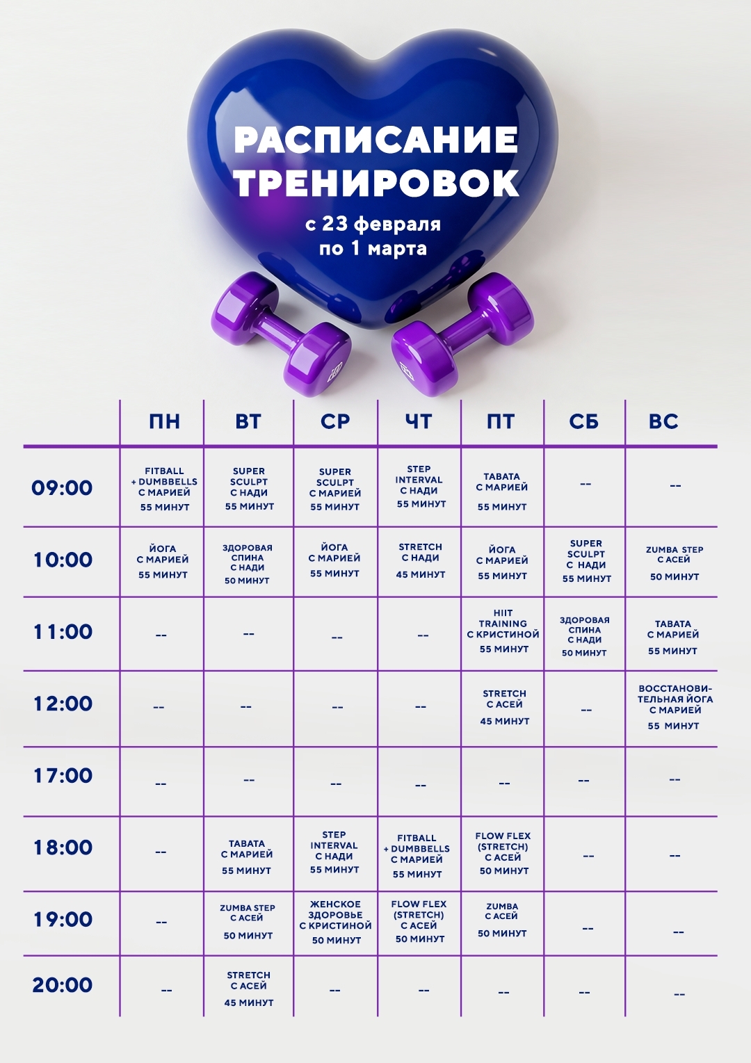 Работаем все праздничные дни и приглашаем на тренировки! Кстати, на втором слайде подготовили расписание тренировок на неделю с 23 февраля по 1 марта - мы знаем, как важно планировать свои дела заранее, чтобы найти в них время для любимых групповых тренировок